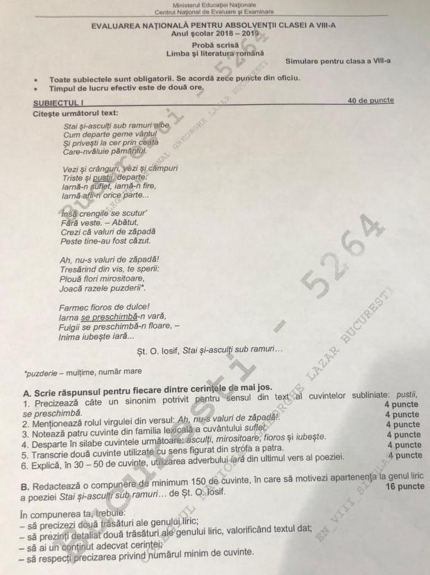 Elevii au primit două texte la primul subiect de la simularea probei de limba română din cadrul evaluării naționale. Vezi subiectele la romana la simularea evaluarii nationale 2021! Subiectele date la simularea evaluarii nationala, la limba si literatura romana, le puteti vedea aici: Ministerul educatiei a facut publice noile modele de subiecte pentru evaluarea nationala 2021. Barem model evaluare nationala matematica 2021.